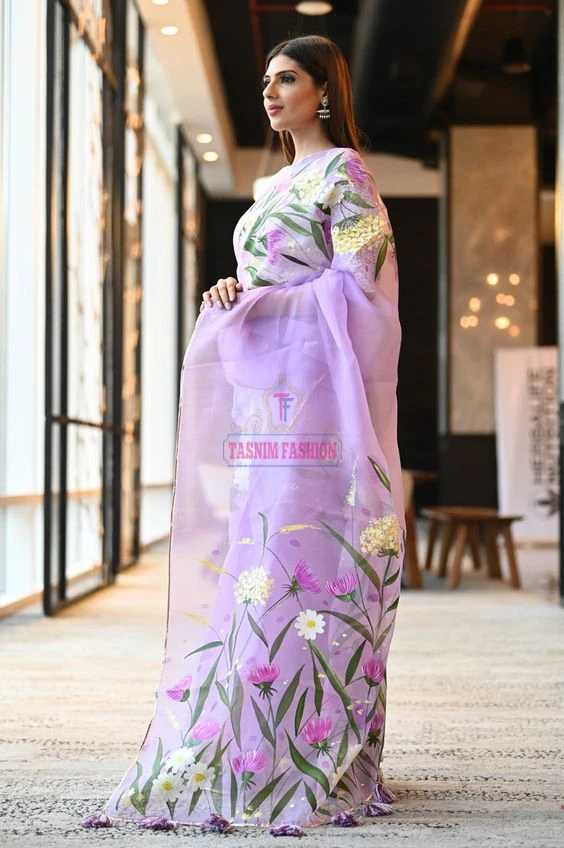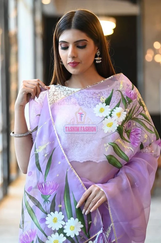 Pure muslin Sopura Hand Paint With Karchupi Work All Over Design Sarees-TF