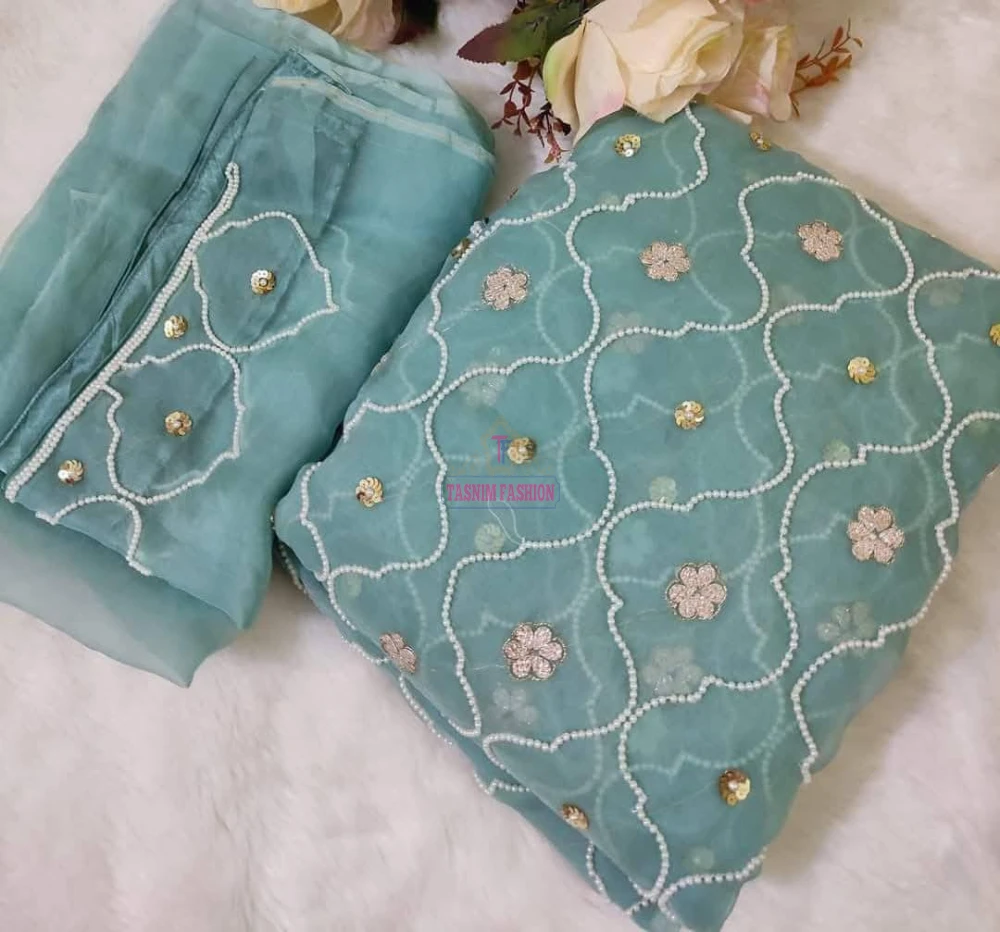 Sopura Pure muslin Hand Sequence pearl Cutdana Work All Over Design Sarees-Tasnim Fashion