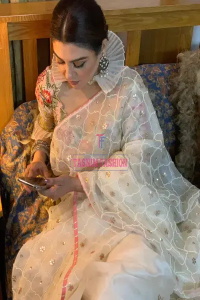 Sopura Pure muslin joya ahsan Hand Embroidered Hand Made Karchupi Peral Gottapatti Work All Over Design Sarees-Tasnim Fashion